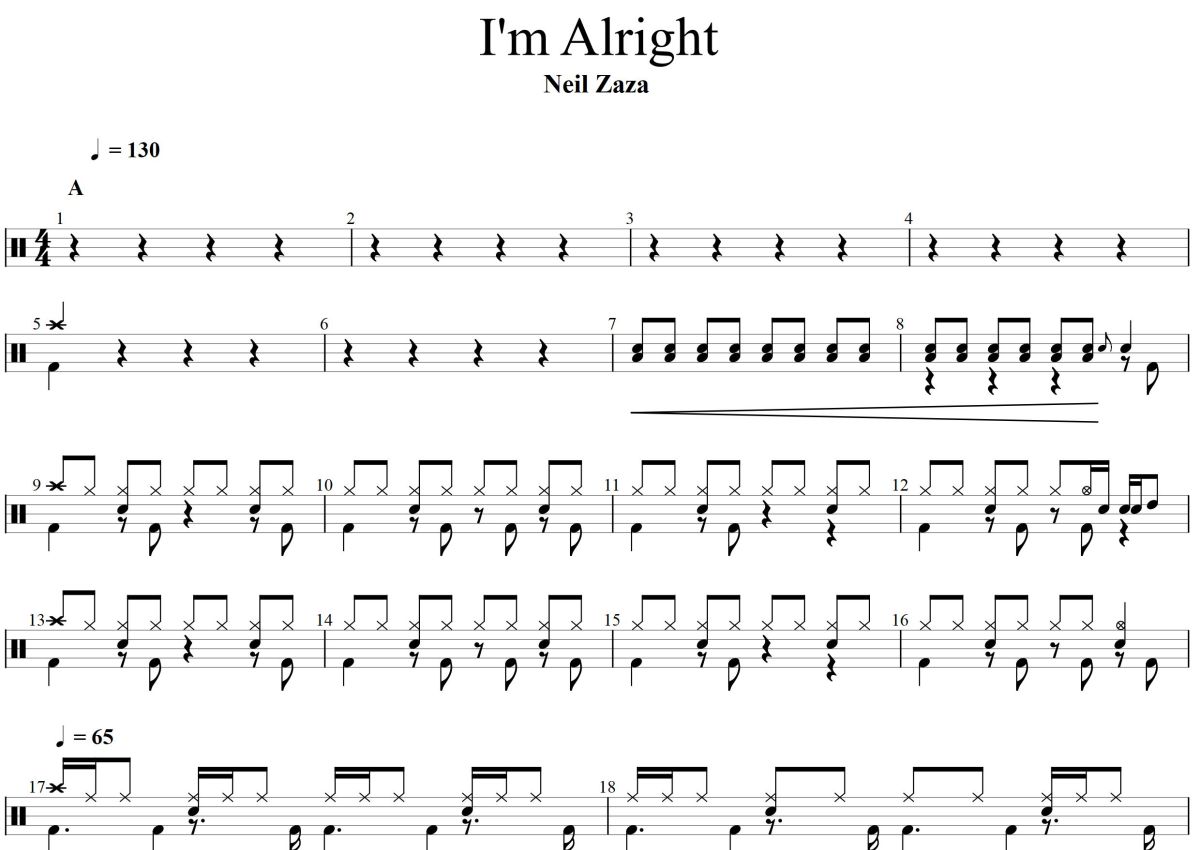Neil Zaza《I'm Alright》鼓谱 - 架子鼓谱