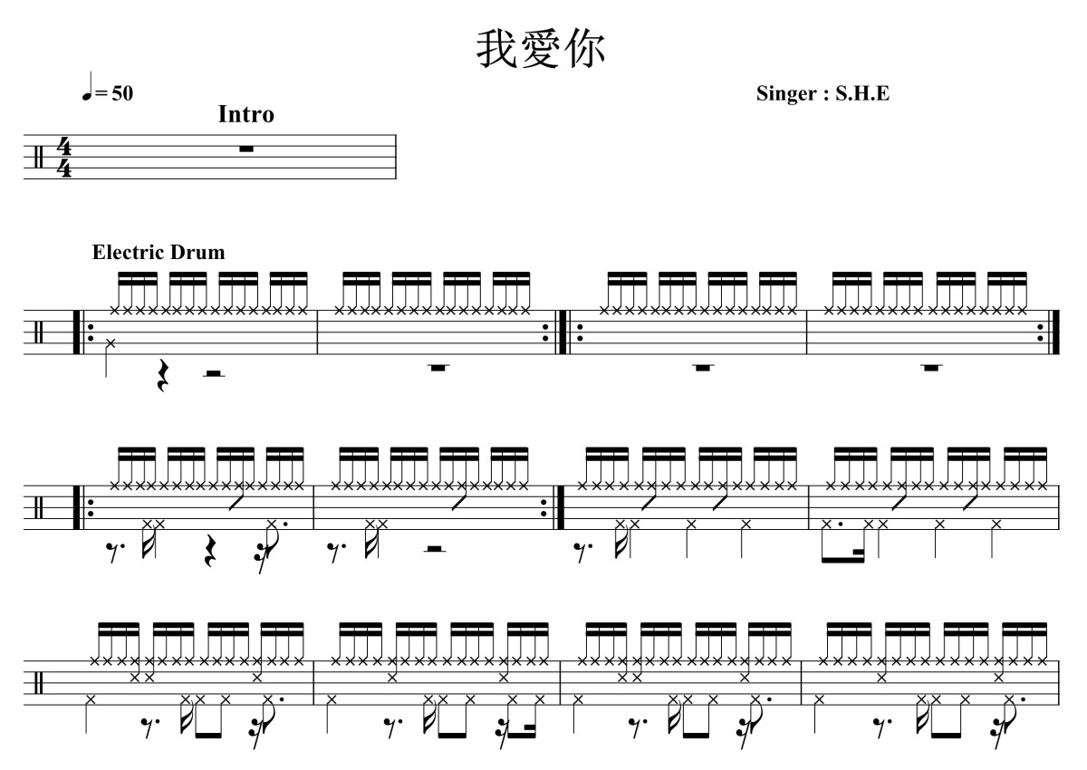 S.H.E《我爱你》鼓谱 - 架子鼓谱
