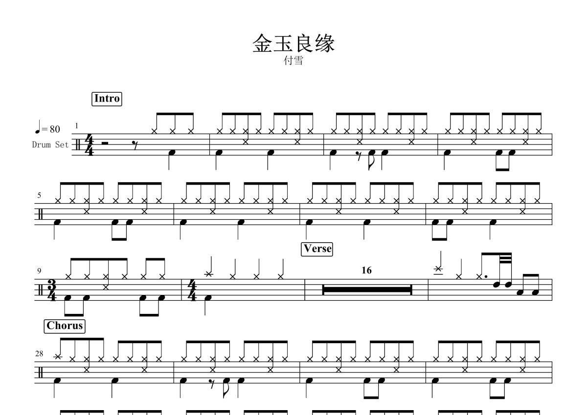 付雪《金玉良缘》鼓谱 - 架子鼓谱