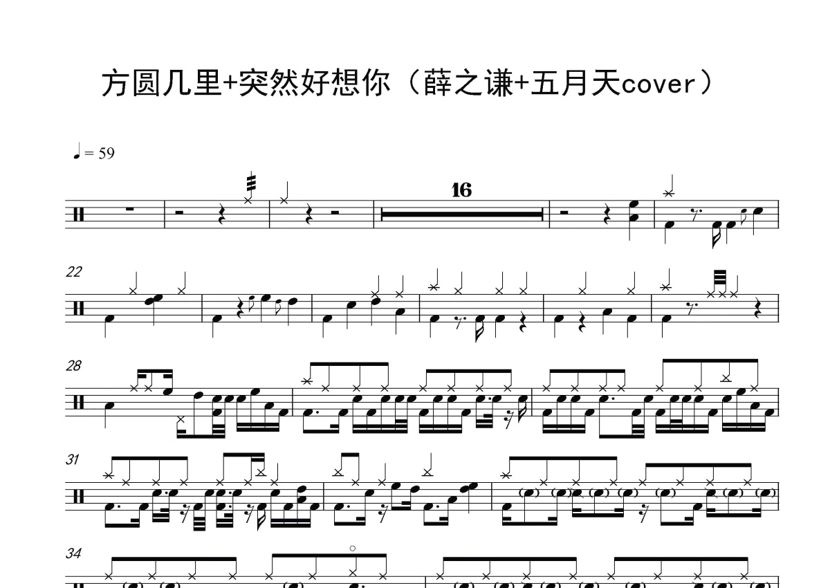 薛之谦+五月天《方圆几里+突然好想你》鼓谱 - 架子鼓谱
