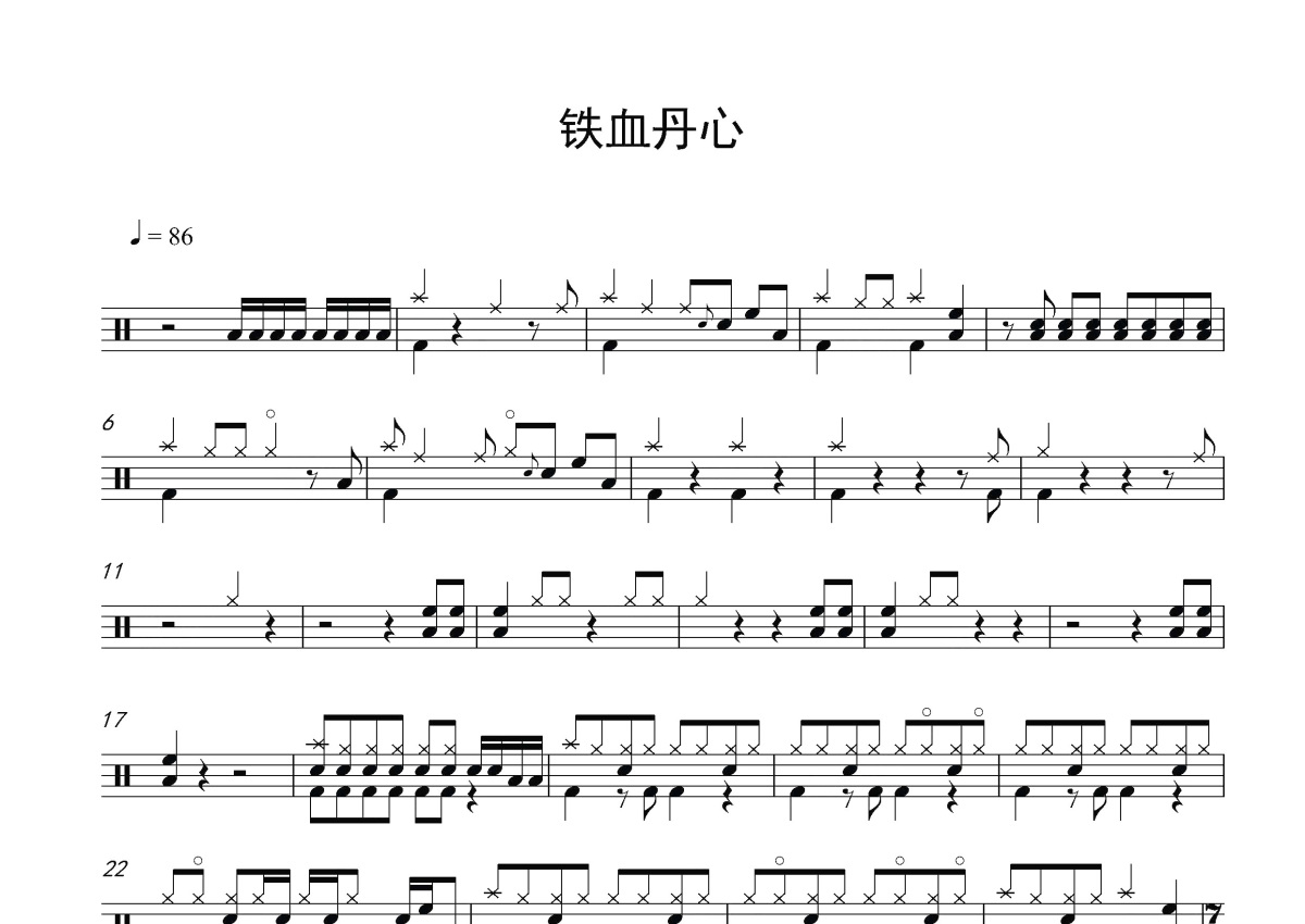 清凯叔《铁血丹心》鼓谱 - 架子鼓谱