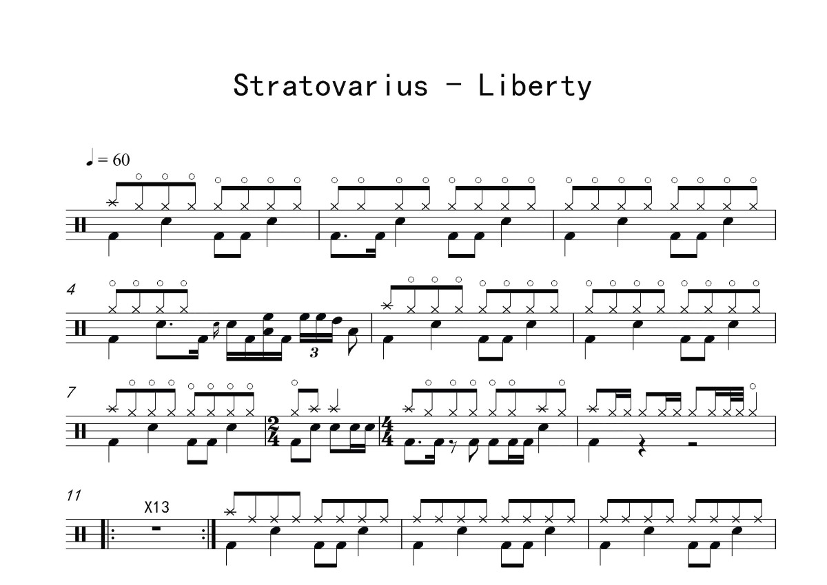 《Liberty》是Stratovarius(灵云乐队)演唱的一首歌曲,现场版,这份鼓谱共有两张高清图谱,图谱由 @打鼓谱 编配上传,图谱使用五线谱编配,使用这份Liberty架子鼓谱,你将能够轻松地敲打出这首Stratovarius(灵云乐队)的Liberty,快来尝试吧。《Liberty》现场版。 Stratovarius(灵云乐队)成立于1984年,由三个来自芬兰首都赫尔辛基的三个年轻人组成,他们分别是鼓手兼主唱Tuomo Lassila,贝斯手John Vihervaauml以及吉他手Staffan Straaringahlman。在他们正式取名为Stratovarius之前这三人以Black Water的名字对外演出。
