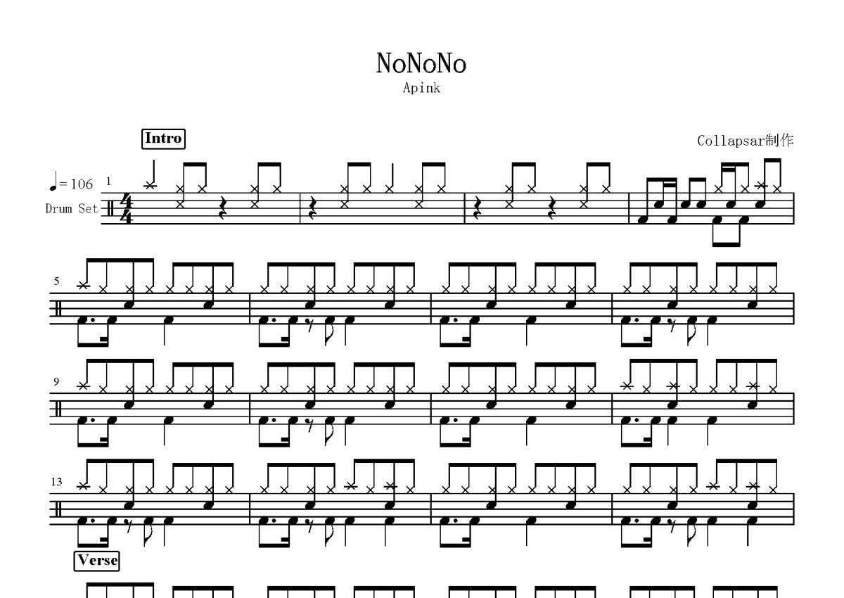 Apink《NoNoNo》鼓谱 - 架子鼓谱