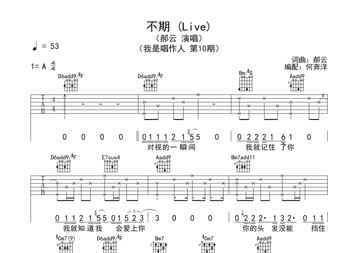 郝云《不期》吉他谱 - A调弹唱六线谱 - 我是唱作人LIVE版