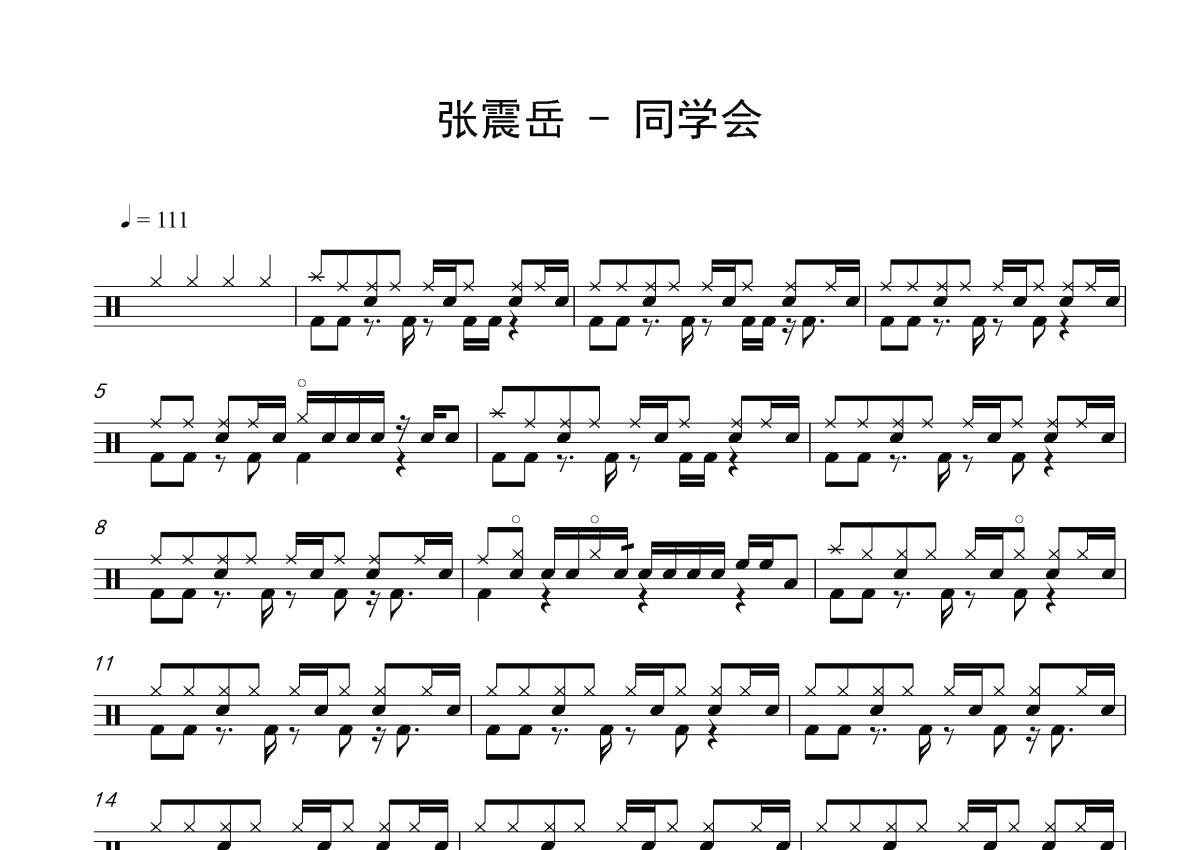 《同学会》是张震岳演唱的一首歌曲,这份鼓谱共有三张高清图谱,图谱由 @打鼓谱 编配上传,图谱使用五线谱编配,使用这份同学会架子鼓谱,你将能够轻松地敲打出这首张震岳的同学会,快来尝试吧。来自于张震岳的专辑:《这个下午很无聊》 。