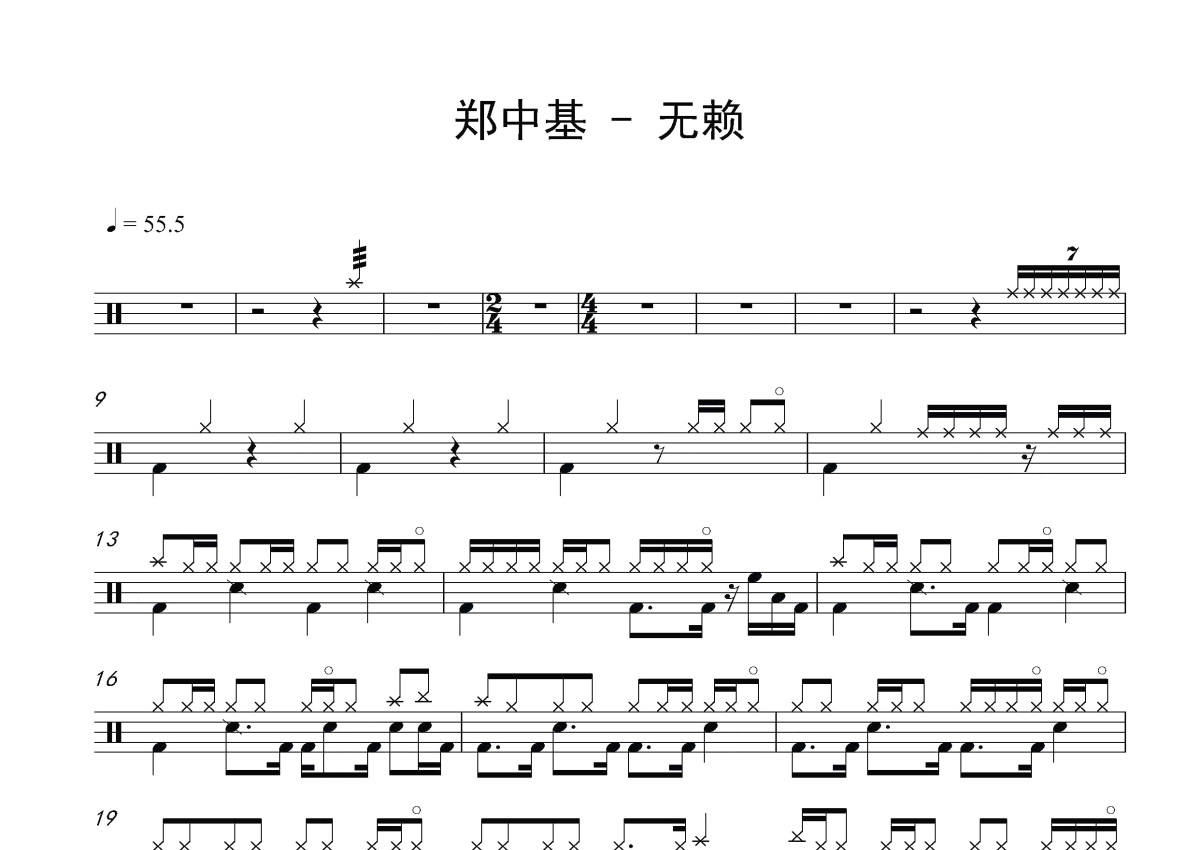 《无赖》是郑中基演唱的一首歌曲,这份鼓谱共有两张高清图谱,图谱由 @打鼓谱 编配上传,图谱使用五线谱编配,使用这份无赖架子鼓谱,你将能够轻松地敲打出这首郑中基的无赖,快来尝试吧。《无赖》是郑中基演唱的一首粤语歌曲,由李峻一填词、作曲,收录在郑中基2005年6月由金牌大风唱片发行的粤语专辑《Before After》中。该歌曲是电影《龙咁威2之皇母娘娘呢》的主题曲。