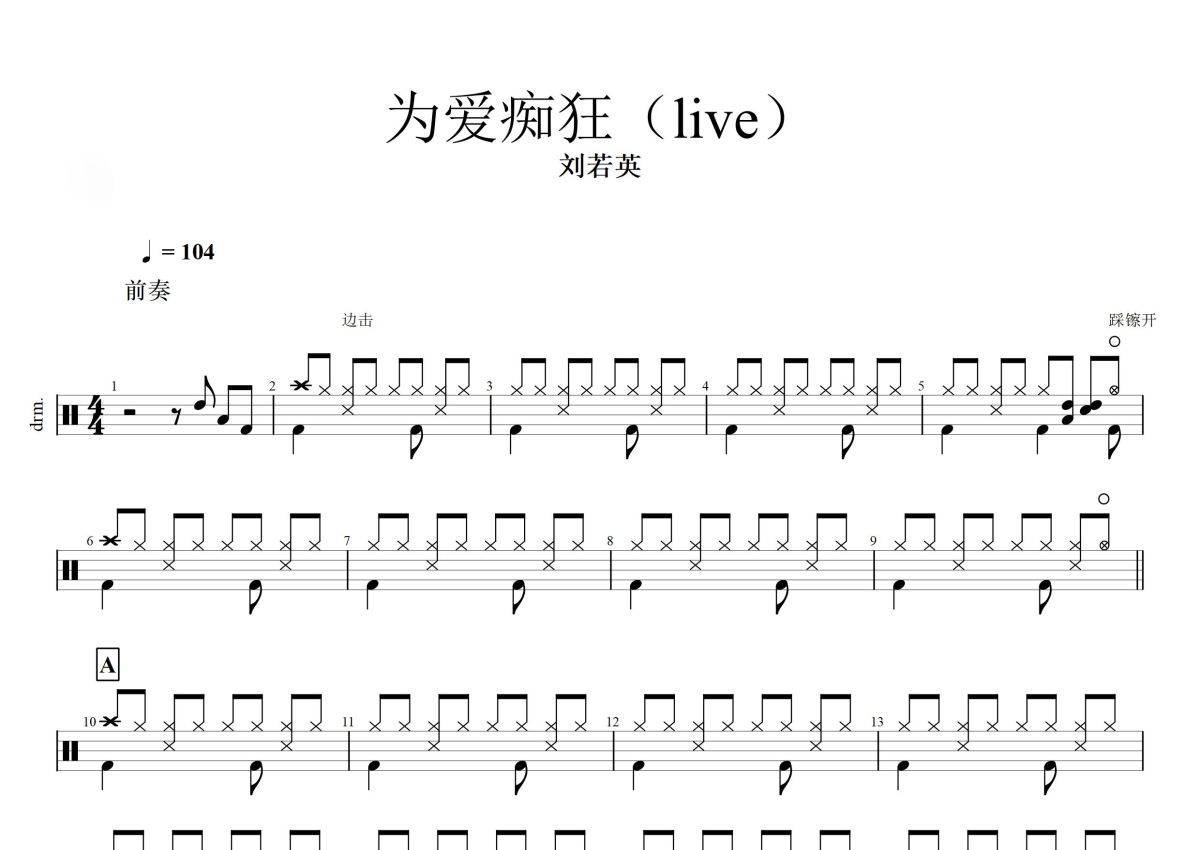 刘若英《为爱痴狂》鼓谱 - 架子鼓谱