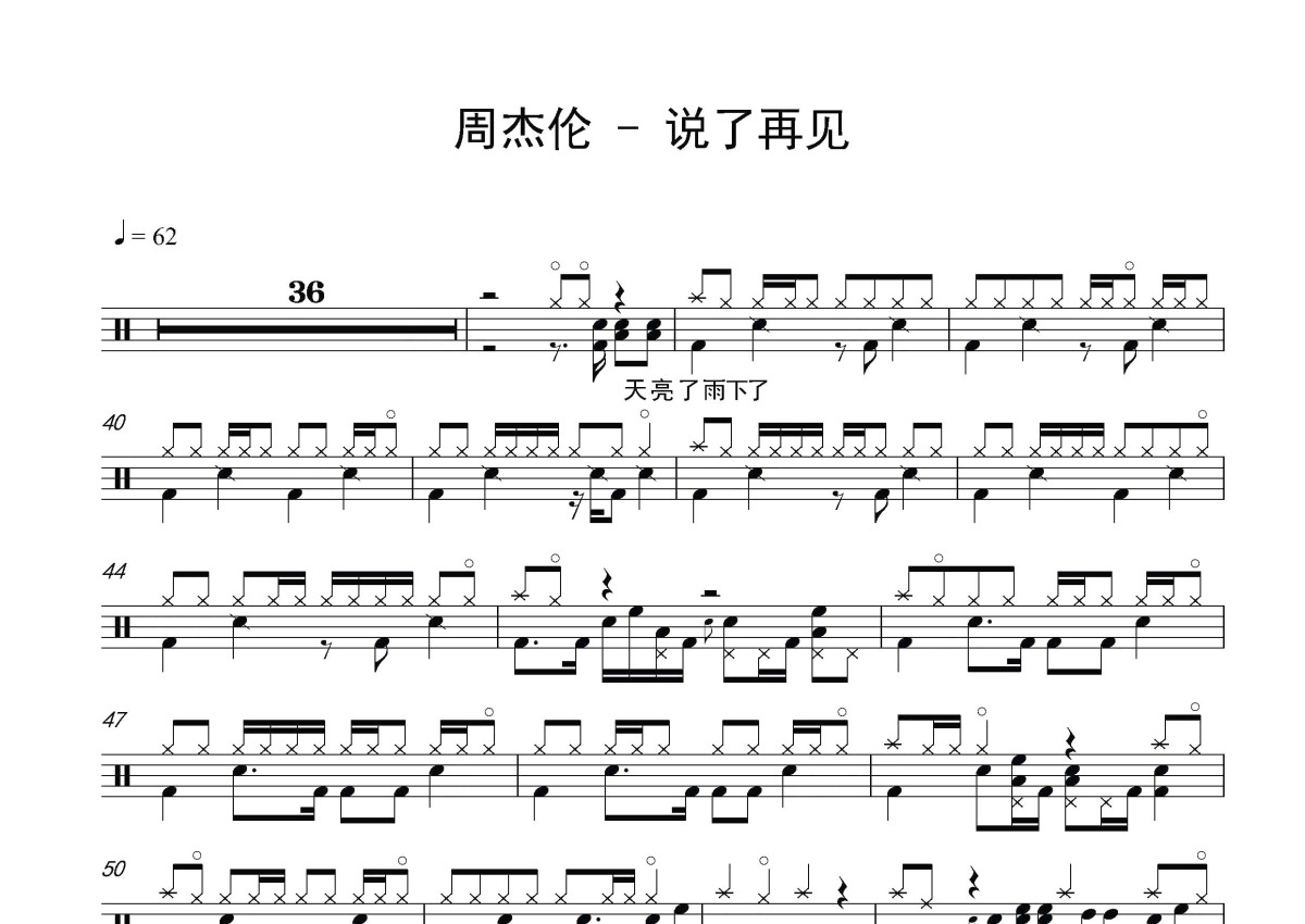 周杰伦《说了再见》鼓谱 - 架子鼓谱
