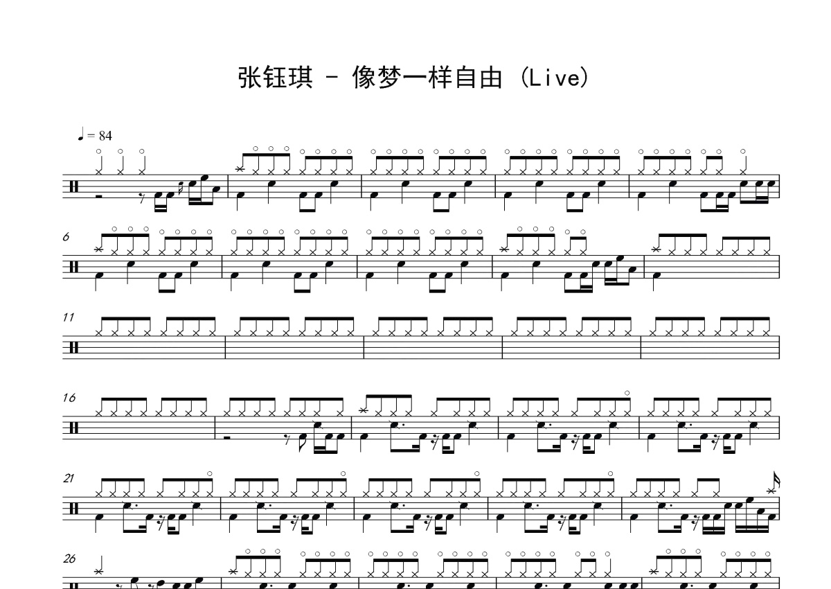张钰琪《像梦一样自由》鼓谱 - 架子鼓谱 - 中国新声代版