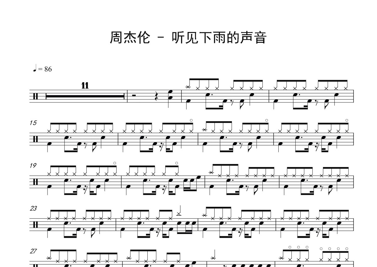 周杰伦《听见下雨的声音》鼓谱 - 架子鼓谱