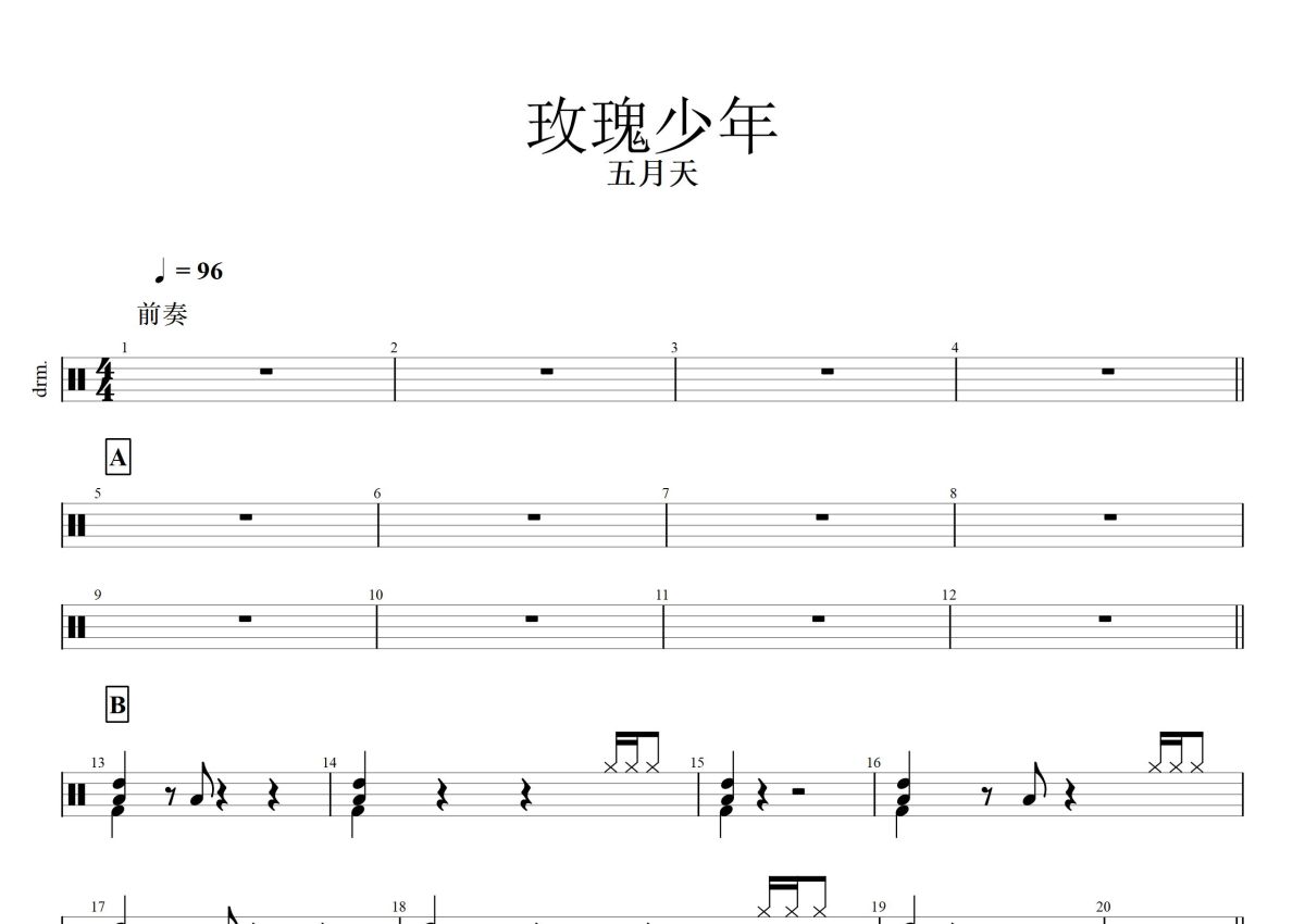 五月天《玫瑰少年》鼓谱 - 架子鼓谱