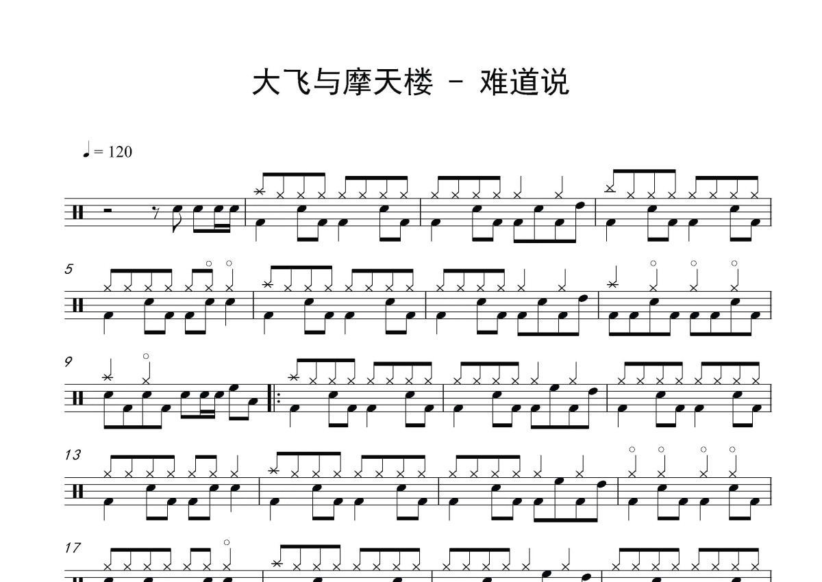 大飞&摩天楼《难道说》鼓谱 - 架子鼓谱