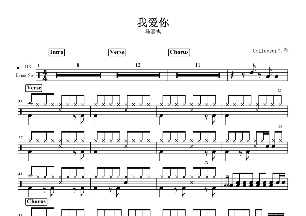 马嘉祺《我爱你》鼓谱 - 架子鼓谱