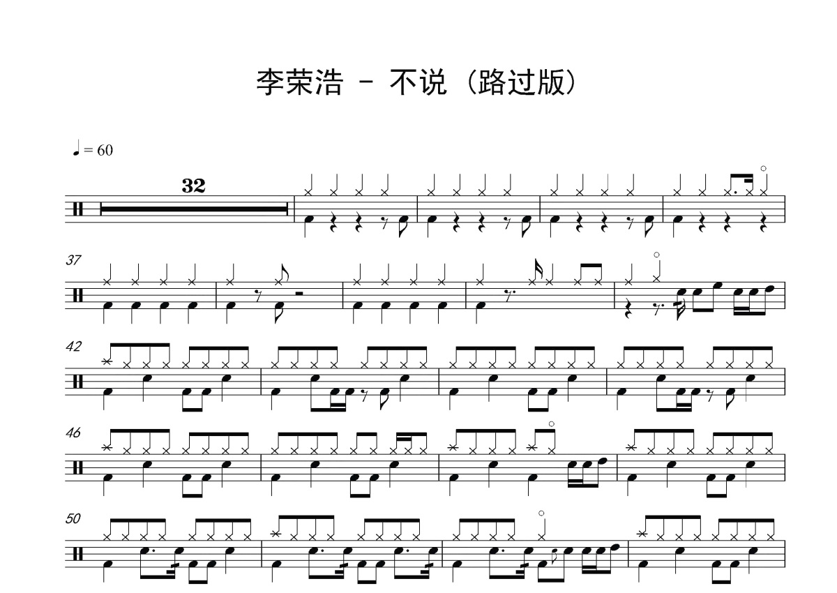李荣浩《不说》鼓谱 - 架子鼓谱