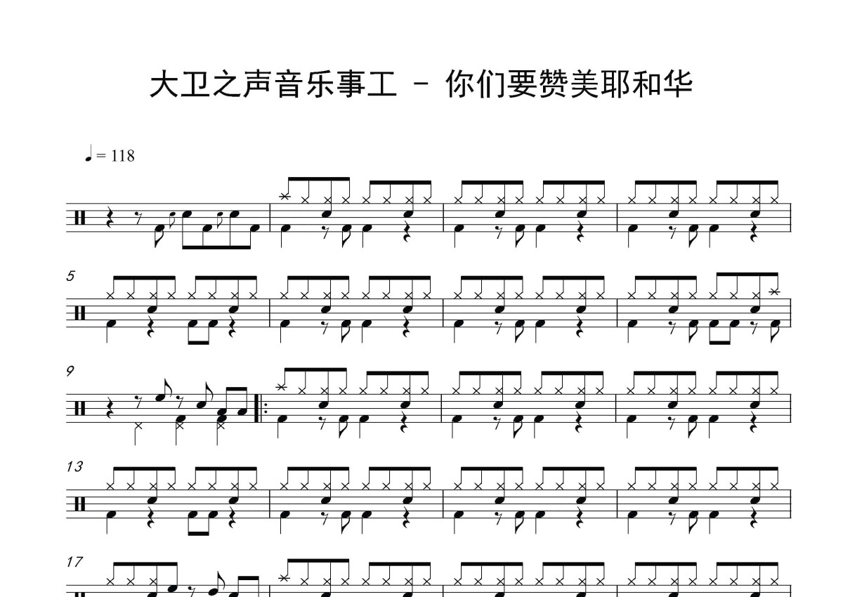 卫之声音乐事工《你们要赞美耶和华》鼓谱 - 架子鼓谱 - 现场版
