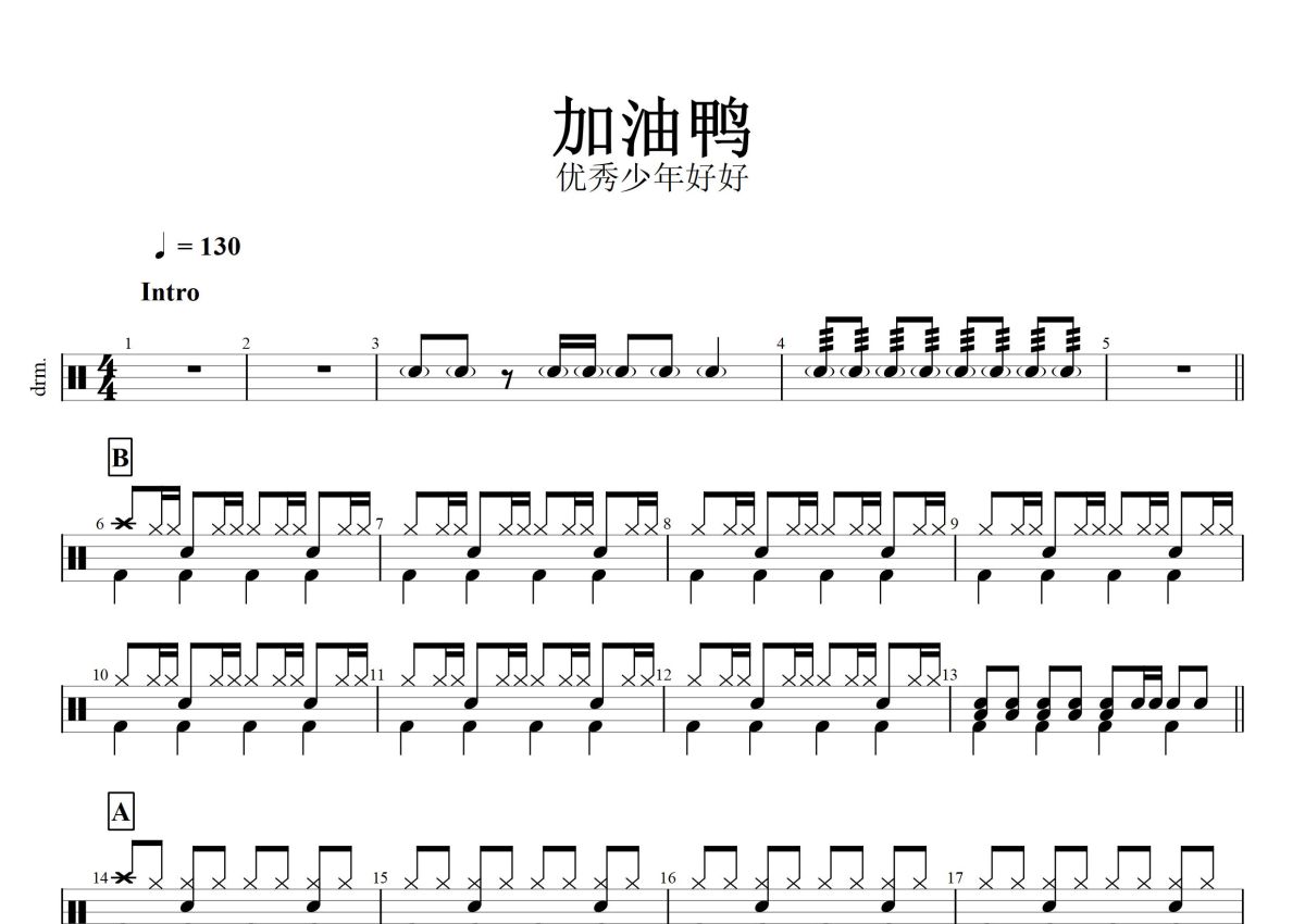 优秀少年好好《加油鸭》鼓谱 - 架子鼓谱