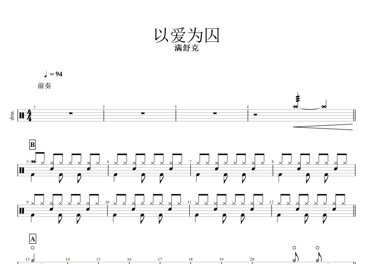 满舒克《以爱为囚》鼓谱 - 架子鼓谱