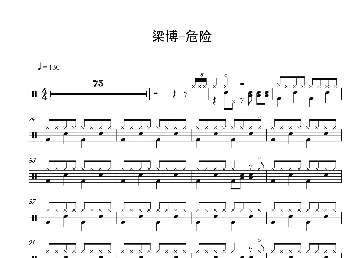 梁博《危险》鼓谱 - 架子鼓谱