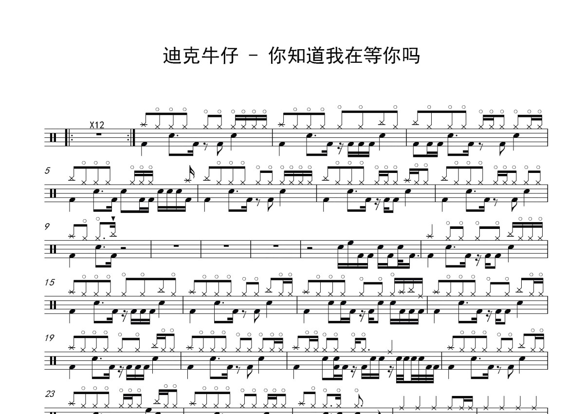 迪克牛仔《你知道我在等你吗》鼓谱 - 架子鼓谱