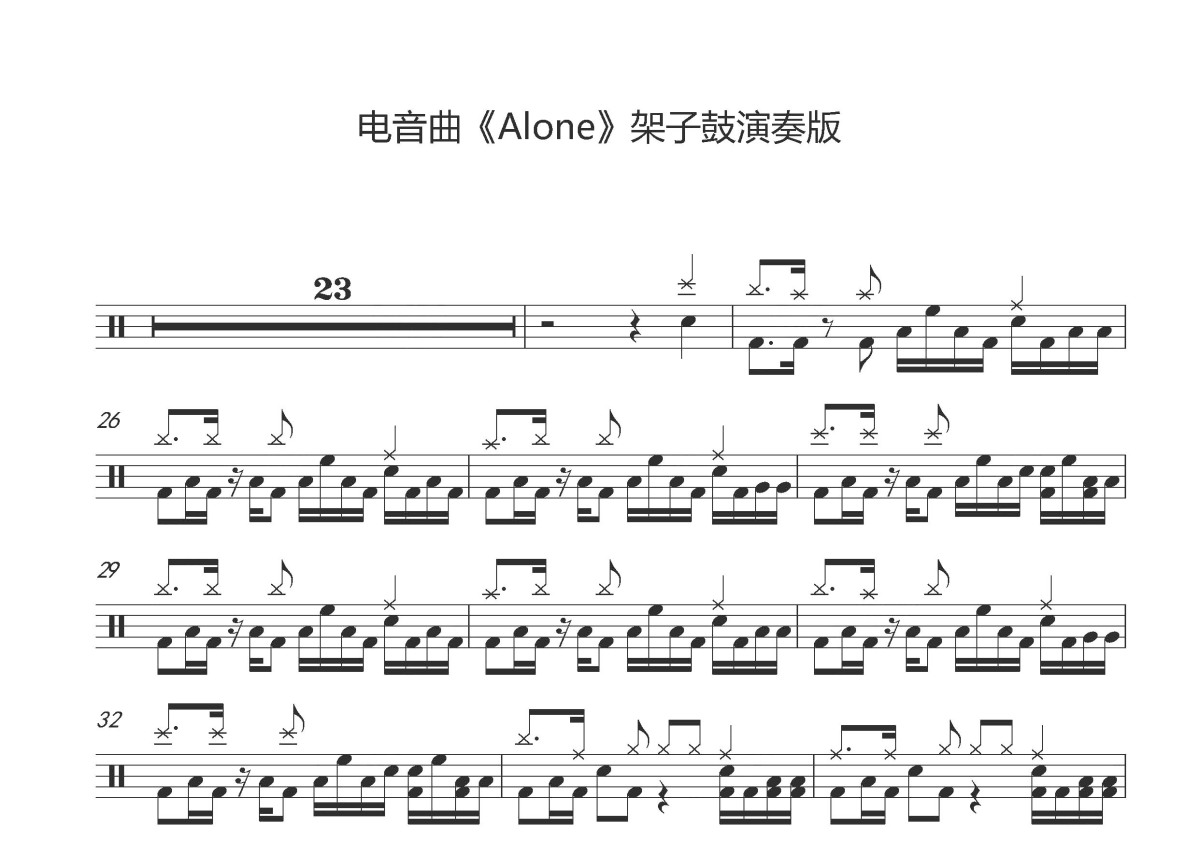 电音曲《Alone》鼓谱 - 架子鼓谱 - 架子鼓演奏版