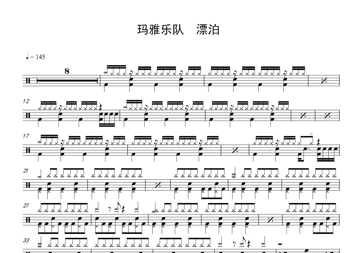 玛雅乐队《漂泊》鼓谱 - 架子鼓谱