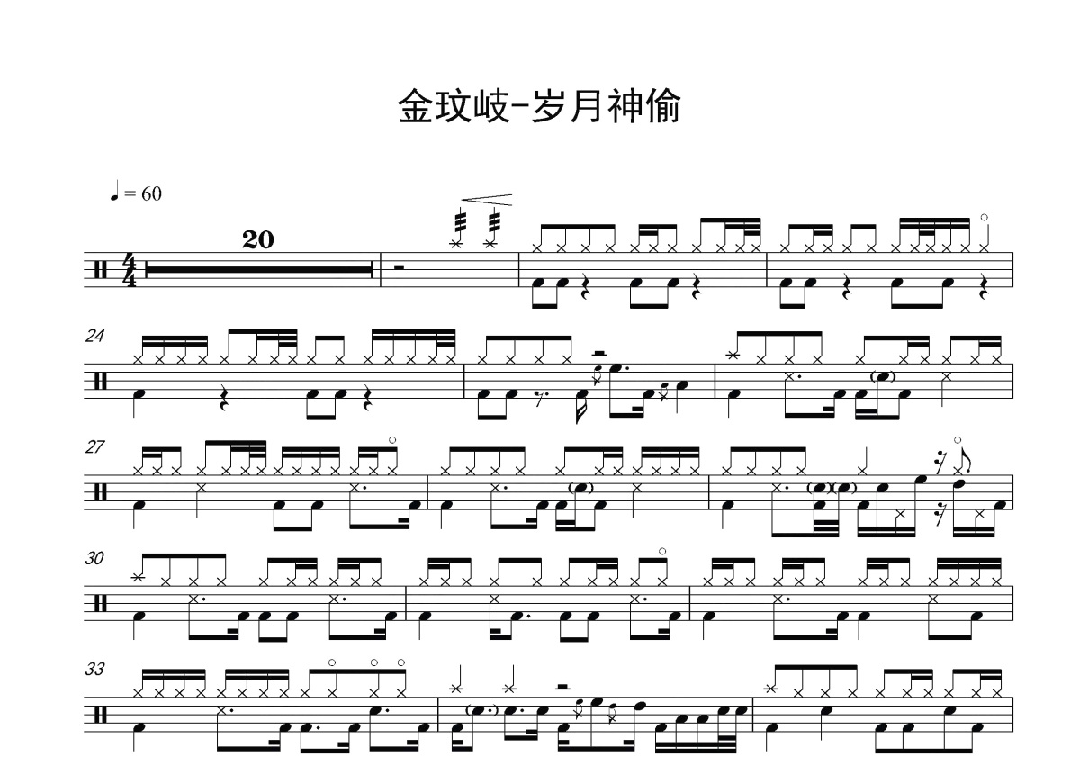 金玟岐《岁月神偷》鼓谱 - 架子鼓谱