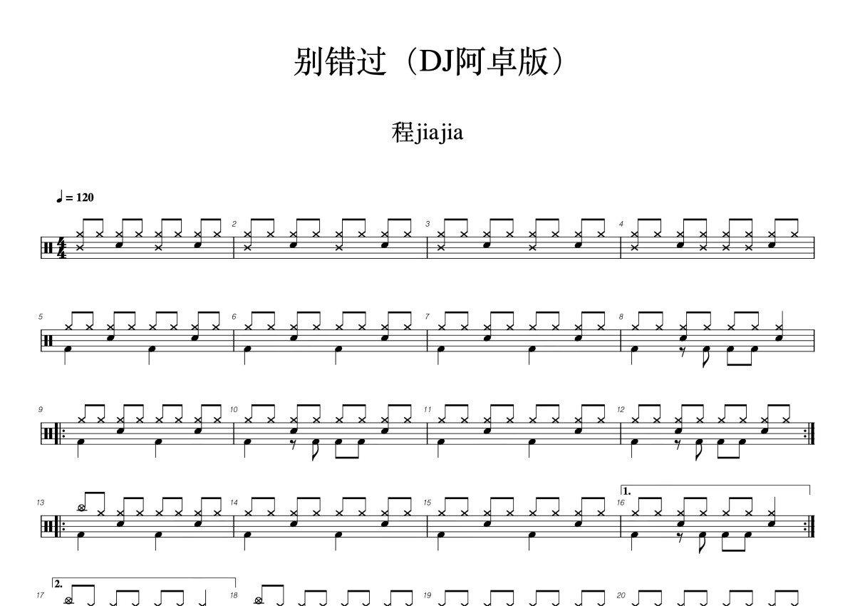 程jiajia《别错过》鼓谱 - 架子鼓谱
