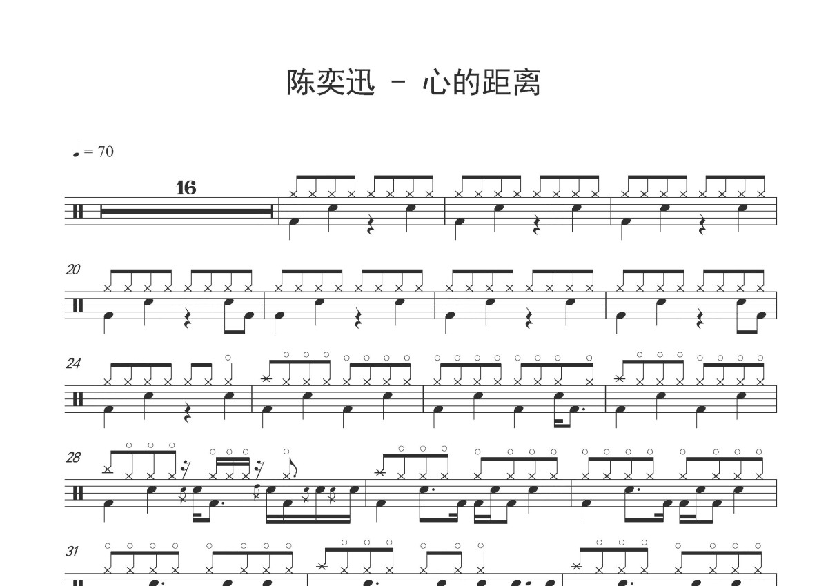 陈奕迅《心的距离》鼓谱 - 架子鼓谱