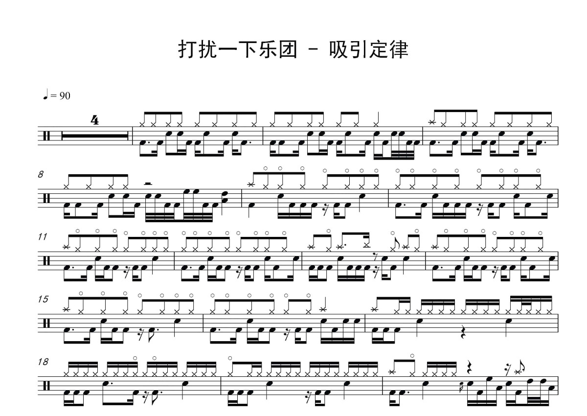 《吸引定律》是打扰一下乐团演唱的一首歌曲,这份鼓谱共有两张高清图谱,图谱由 @打鼓谱 编配上传,图谱使用五线谱编配,使用这份吸引定律架子鼓谱,你将能够轻松地敲打出这首打扰一下乐团的吸引定律,快来尝试吧。《吸引定律》是打扰一下乐团演唱的一首歌曲,由陈圣仑 、米时可填词,陈圣仑谱曲。 灵感来自朗达·拜恩(Rhonda Byrne)的《The Secret 秘密》,我们用摇滚乐的形式,来表现书中的励志内容。一种能量的传递,希望的给予,让你得到你想要的一切,快乐、健康、财富。 打扰一下,成立于2014年8月1日,中国内地音乐组合,由陈圣仑和米时可组成。