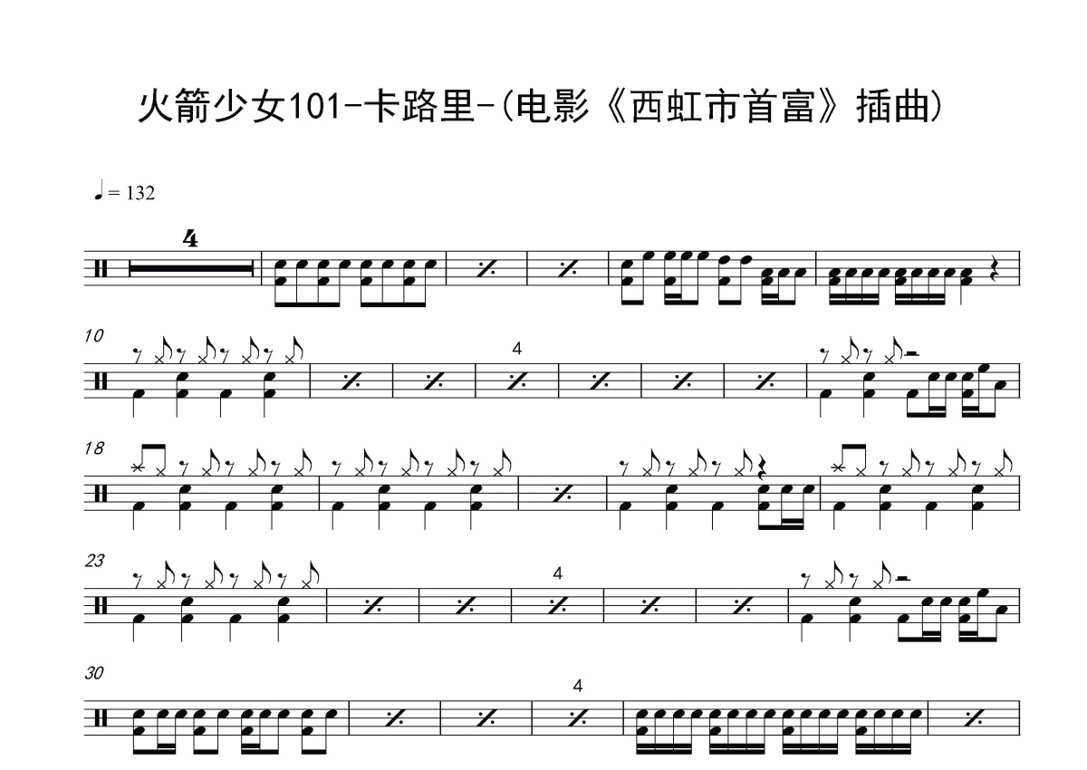 《卡路里》是火箭少女101演唱的一首歌曲,这份鼓谱共有两张高清图谱,图谱由 @打鼓谱 编配上传,图谱使用五线谱编配,使用这份卡路里架子鼓谱,你将能够轻松地敲打出这首火箭少女101的卡路里,快来尝试吧。《卡路里》是火箭少女101演唱的歌曲,由李聪作词、Akiyama Sayuri作曲,亦是电影《西虹市首富》的插曲,发行于2018年7月26日。