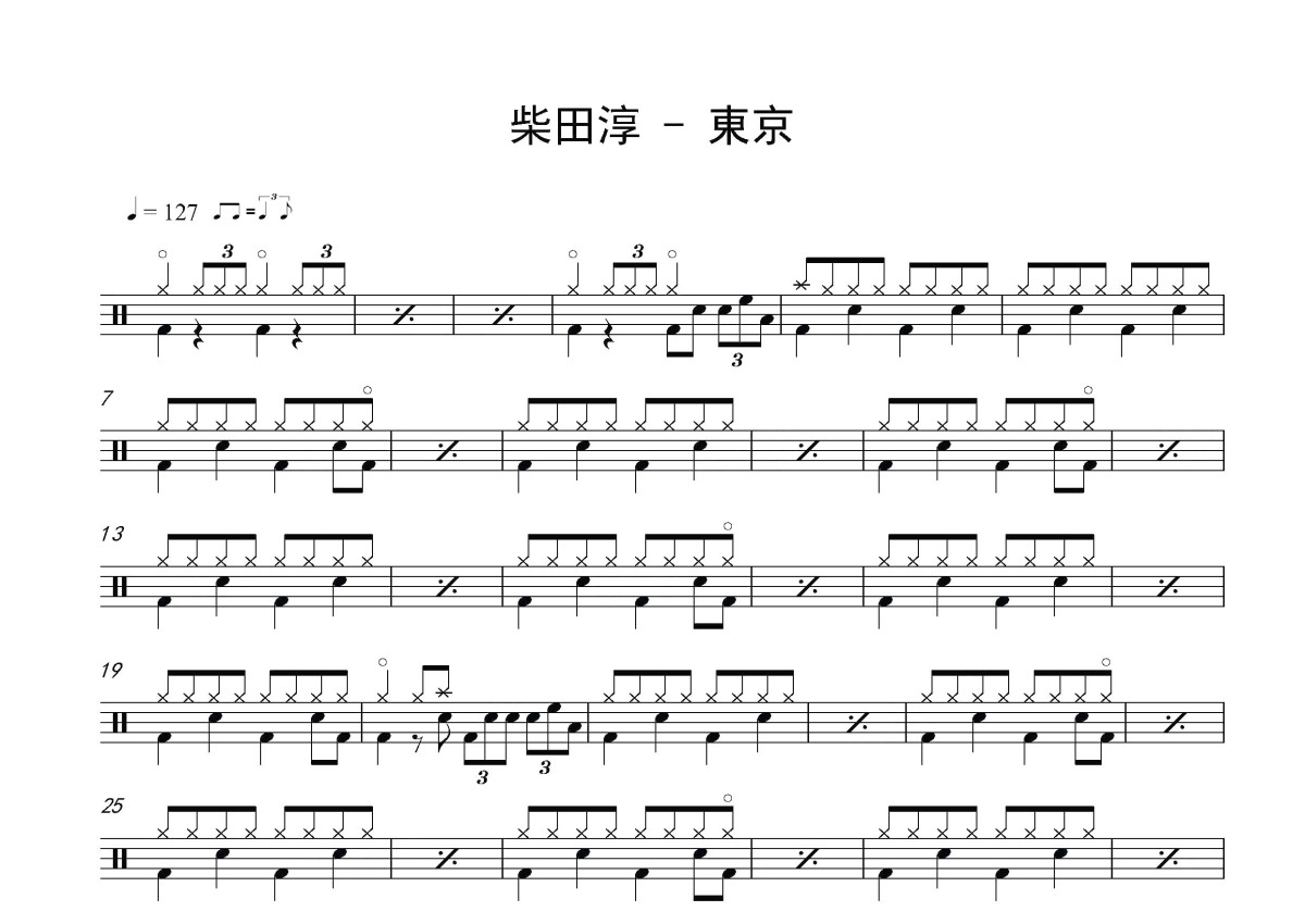 柴田淳(しばた じゅん ,Shibata Jun )《东京》鼓谱 - 架子鼓谱