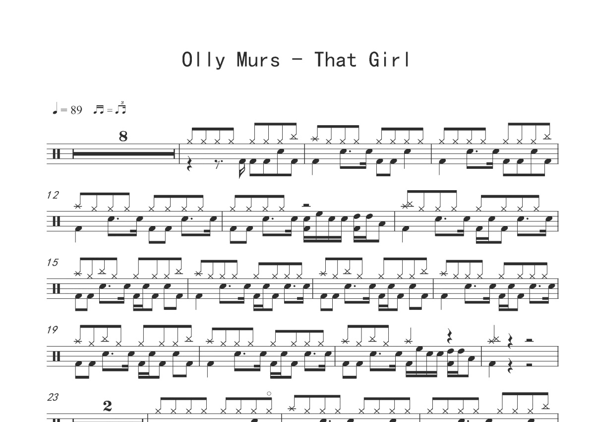 Olly Murs《That Girl》鼓谱 - 架子鼓谱