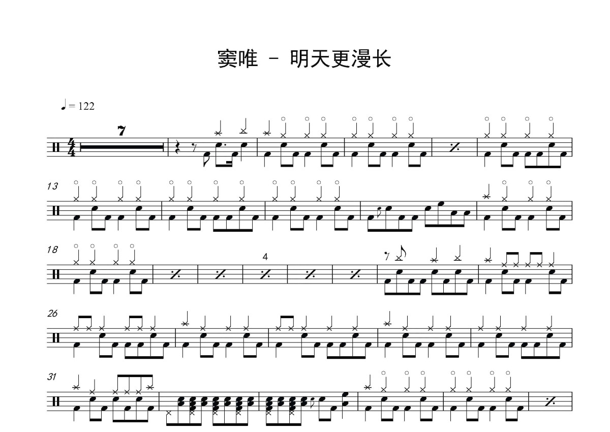 窦唯《明天更漫长》鼓谱 - 架子鼓谱