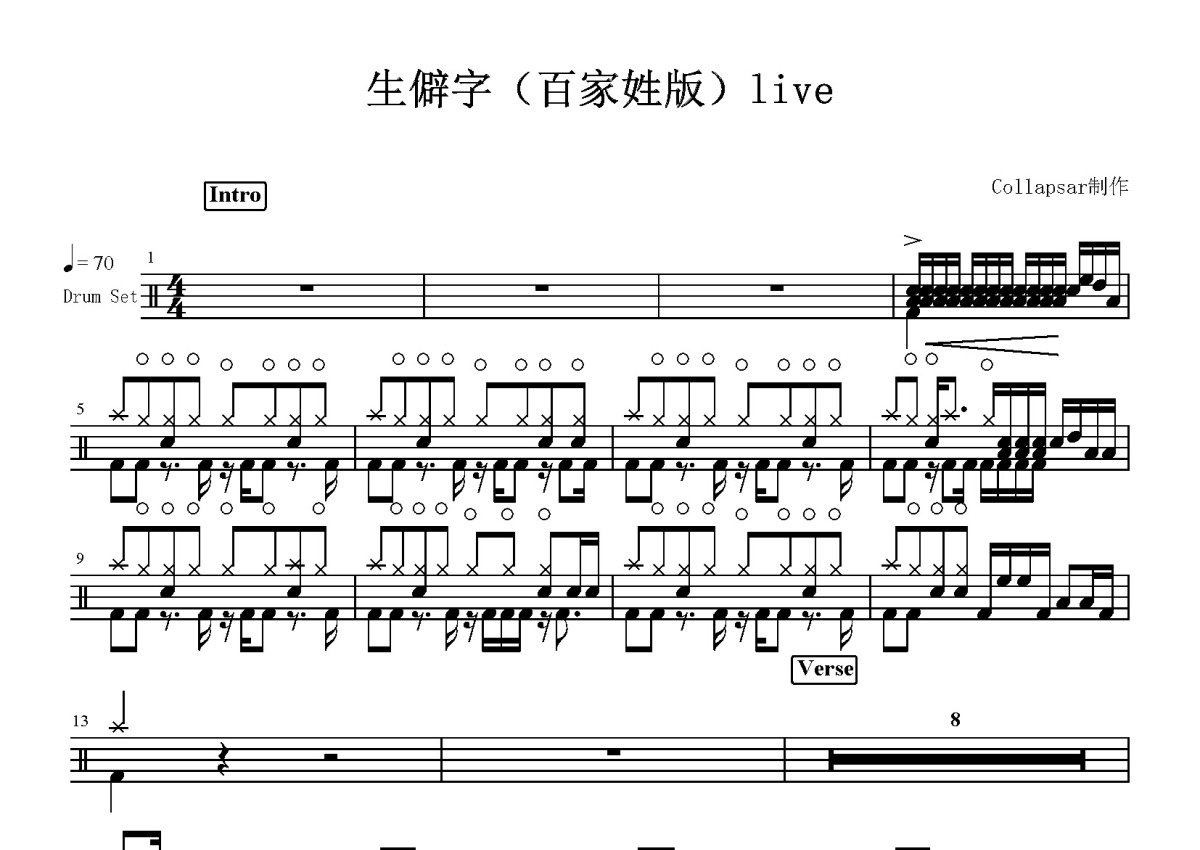 陈柯宇《生僻字》鼓谱 - 架子鼓谱 - 百家姓版