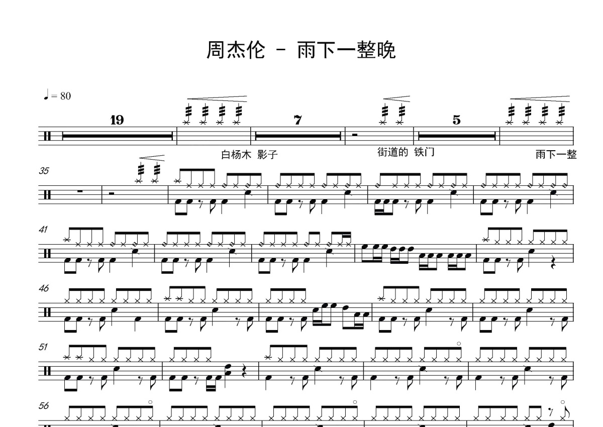 周杰伦《雨下一整晚》鼓谱 - 架子鼓谱