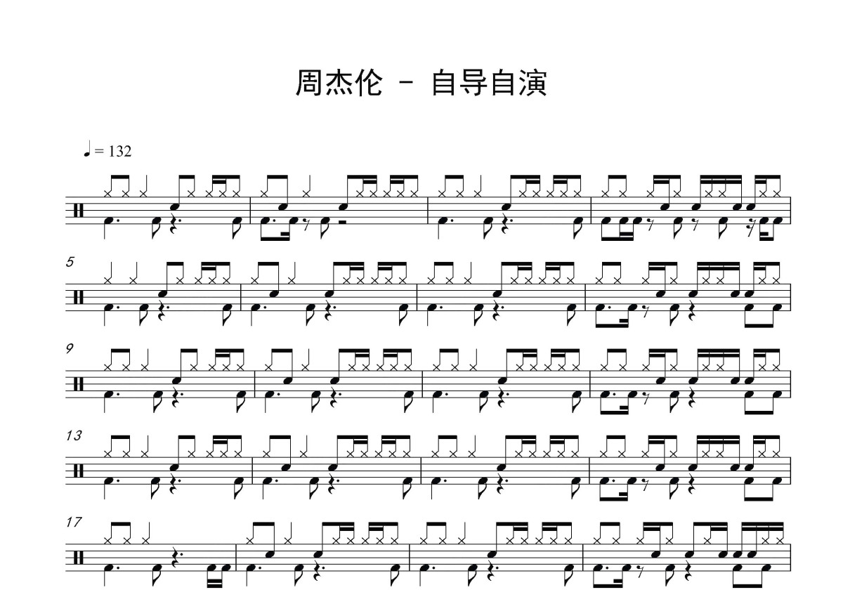 周杰伦《自导自演》鼓谱 - 架子鼓谱