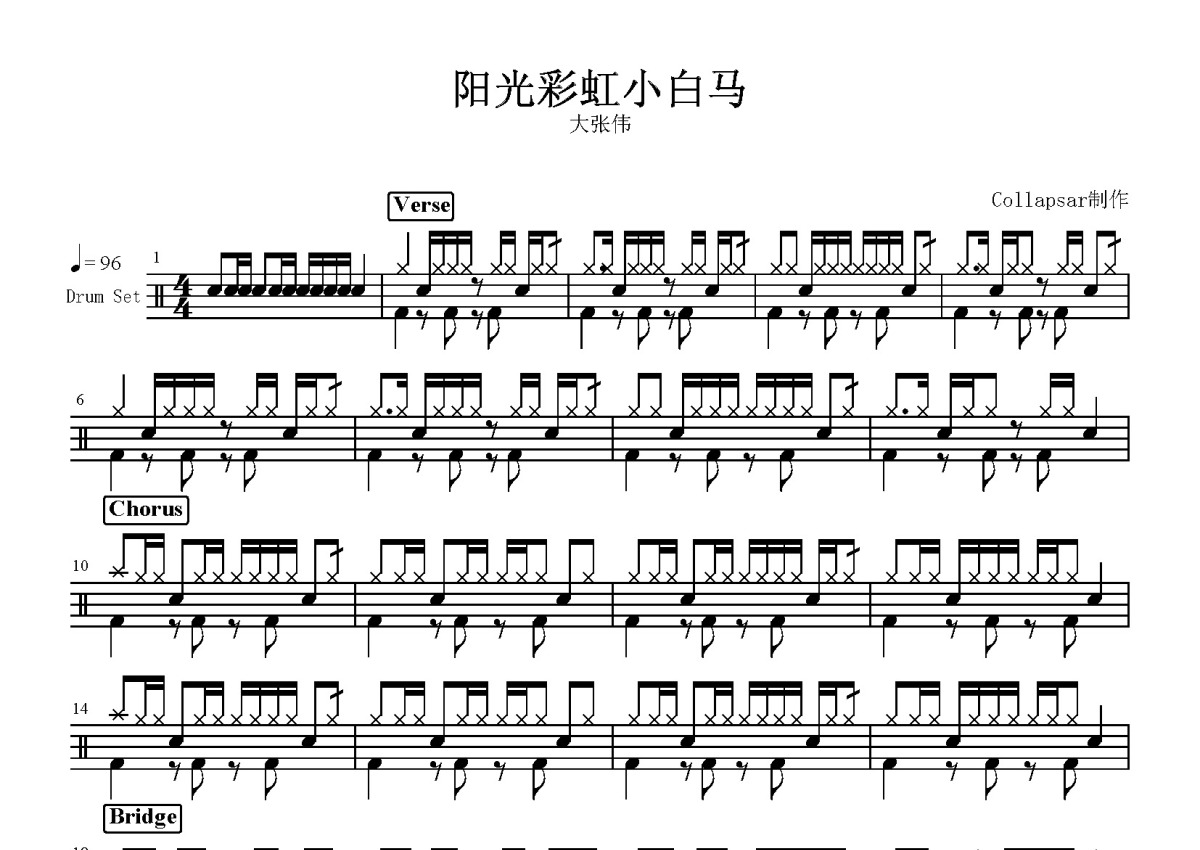 大张伟《阳光彩虹小白马》鼓谱 - 架子鼓谱