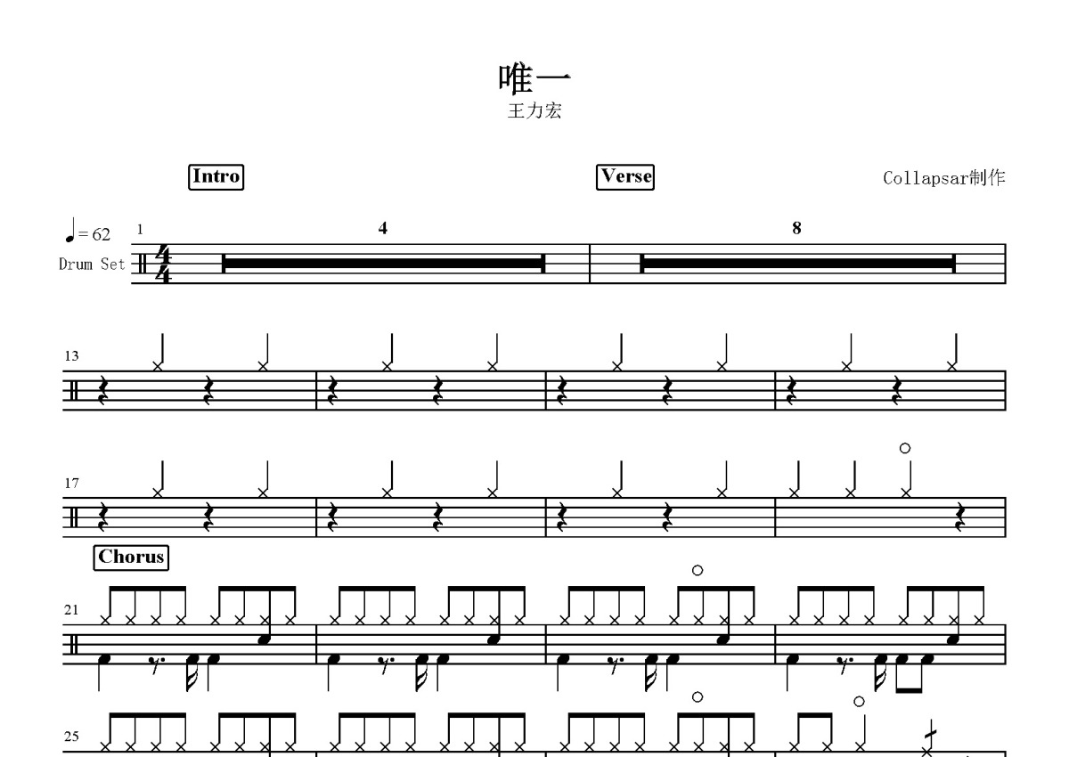 王力宏《唯一》鼓谱 - 架子鼓谱