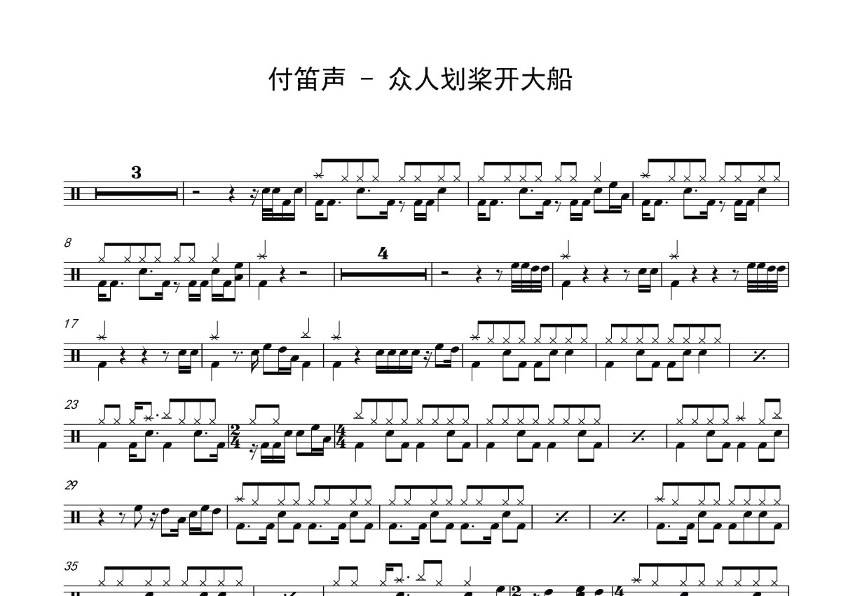付笛声《众人划桨开大船》鼓谱 - 架子鼓谱