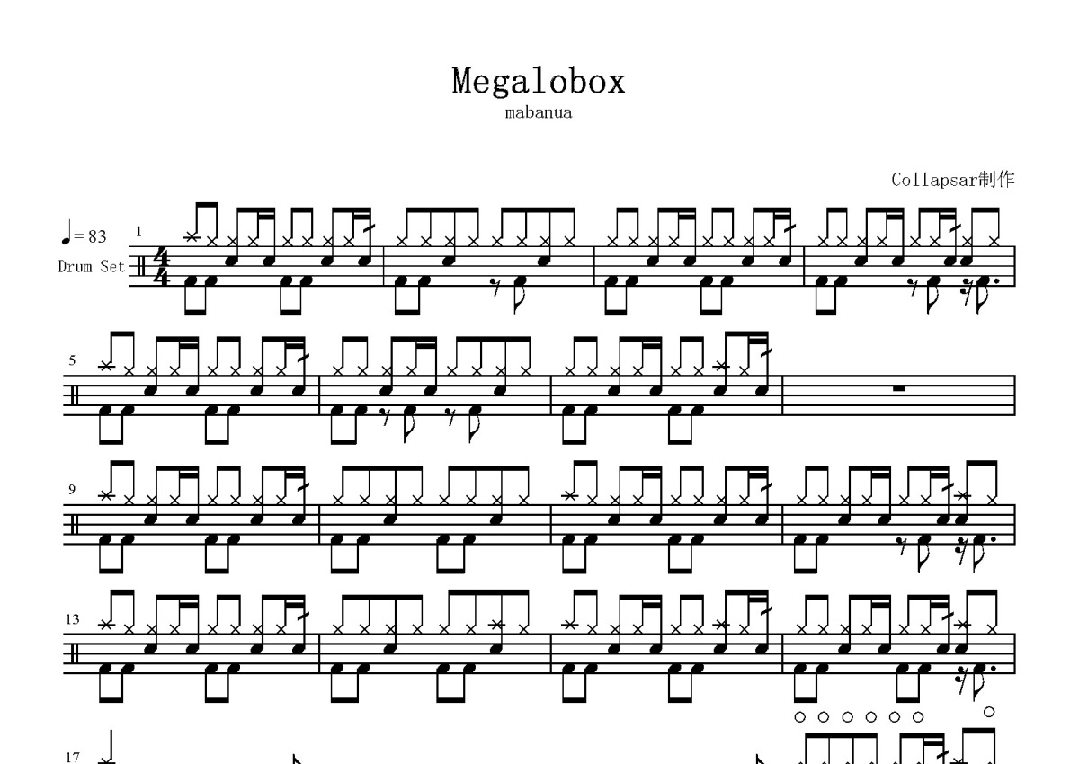 mabanua《Megalobox》鼓谱 - 架子鼓谱
