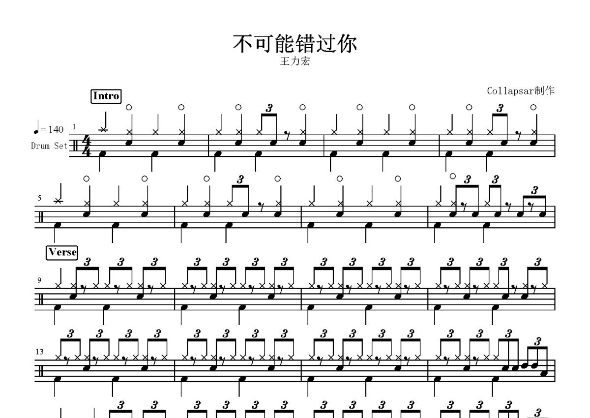 王力宏《不可能错过你》鼓谱 - 架子鼓谱