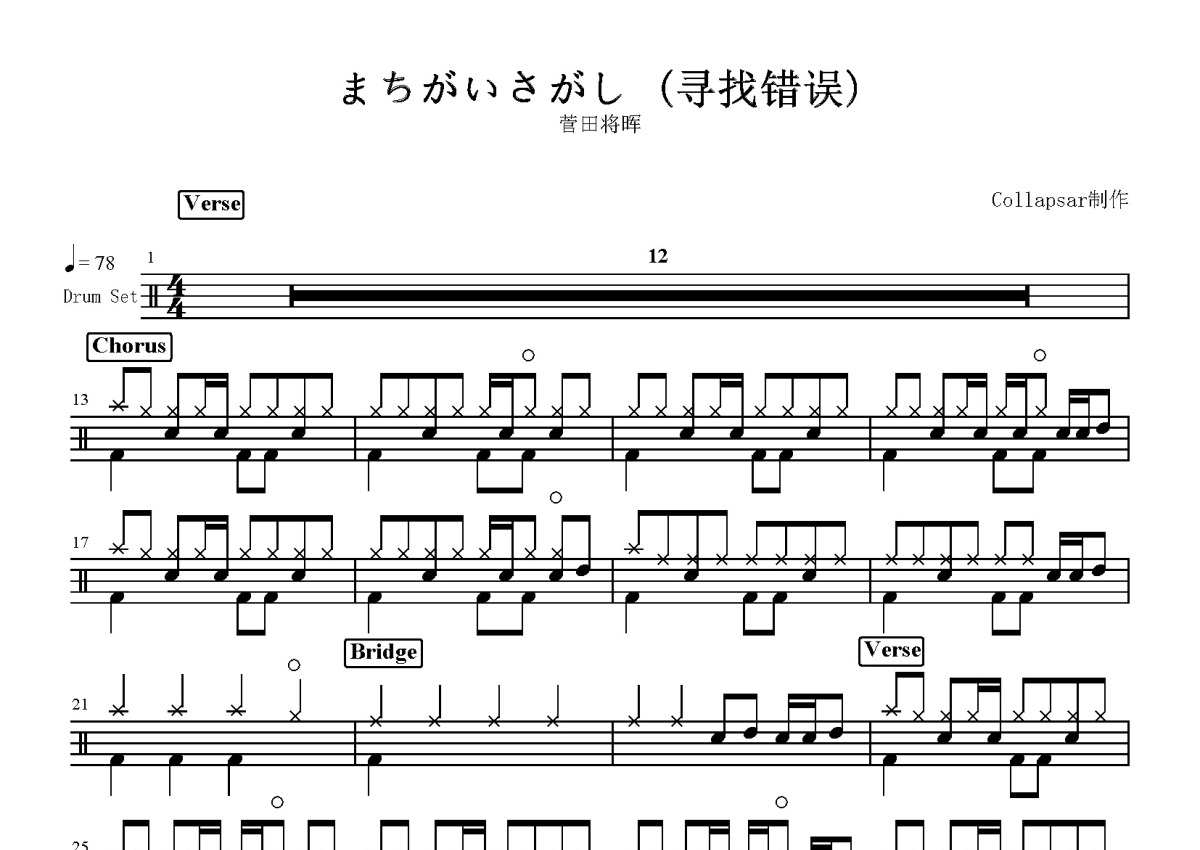 菅田将晖《寻找错误》鼓谱 - 架子鼓谱