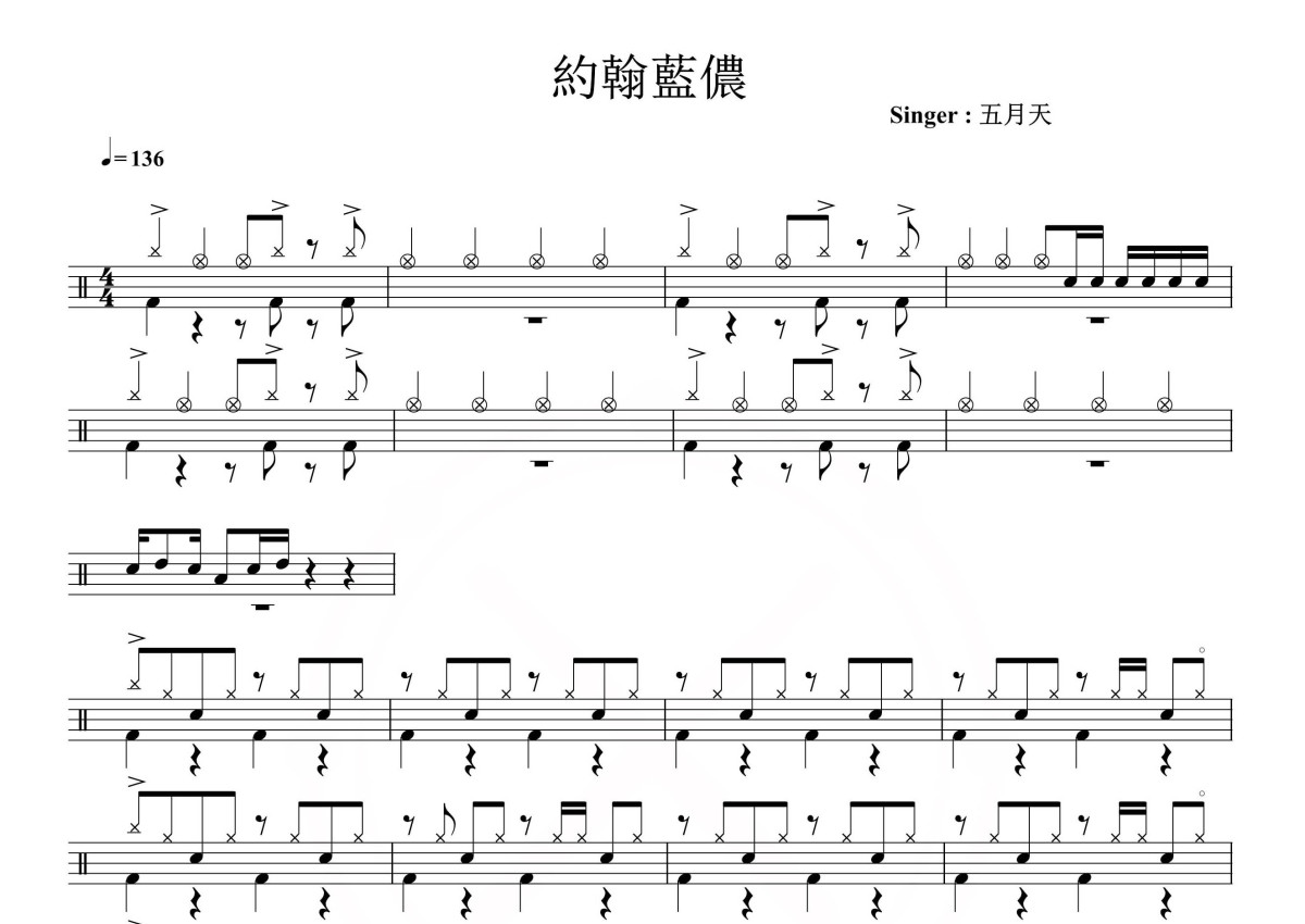 五月天《约翰蓝侬》鼓谱 - 架子鼓谱