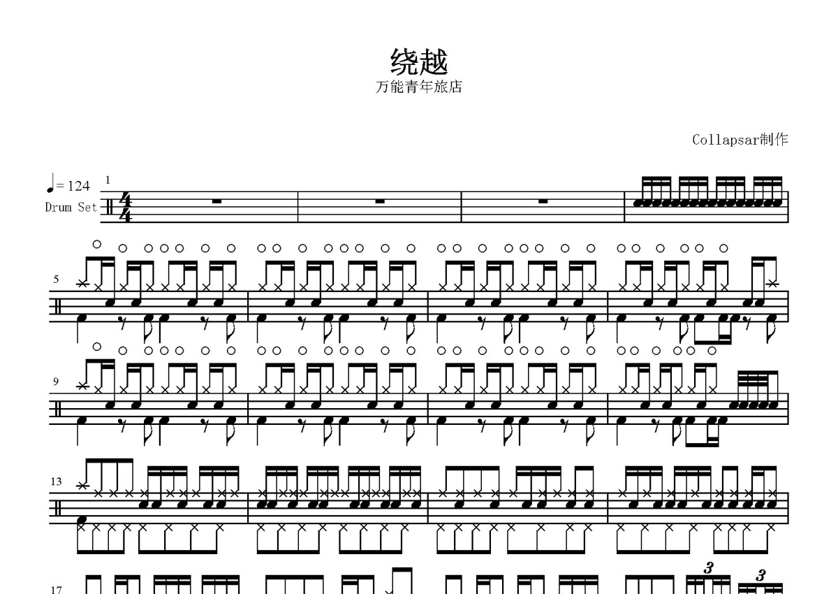 万能青年旅店《绕越》鼓谱 - 架子鼓谱