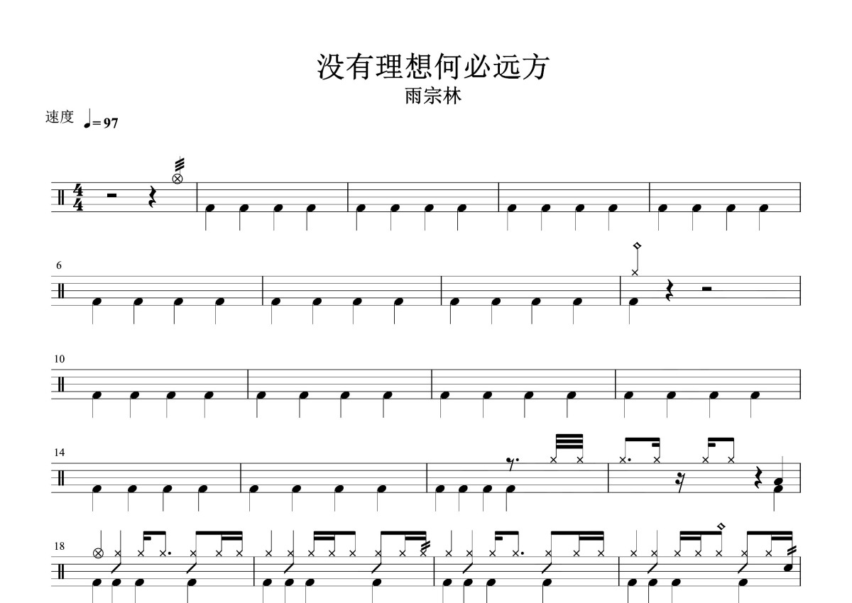 雨宗林《没有理想何必远方》鼓谱 - 架子鼓谱