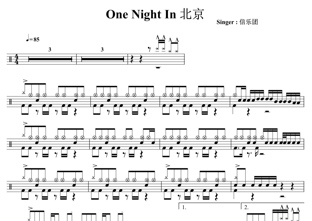 信乐团《北京一夜》鼓谱 - 架子鼓谱