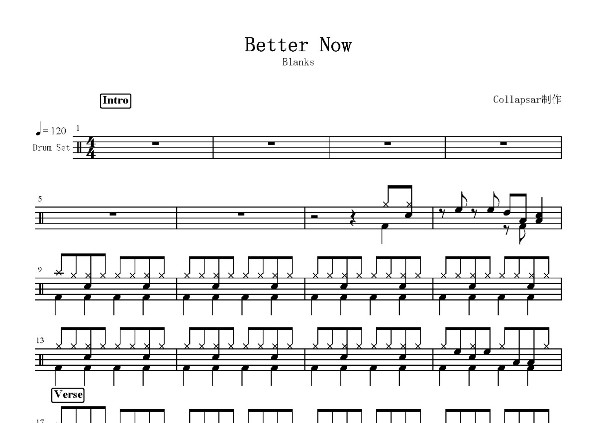 Post Malone《Better Now》鼓谱 - 架子鼓谱