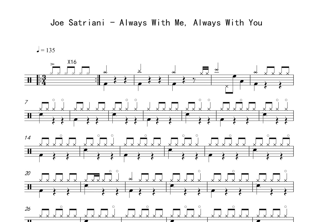 Joe Satriani《Always With Me, Always With You》鼓谱 - 架子鼓谱