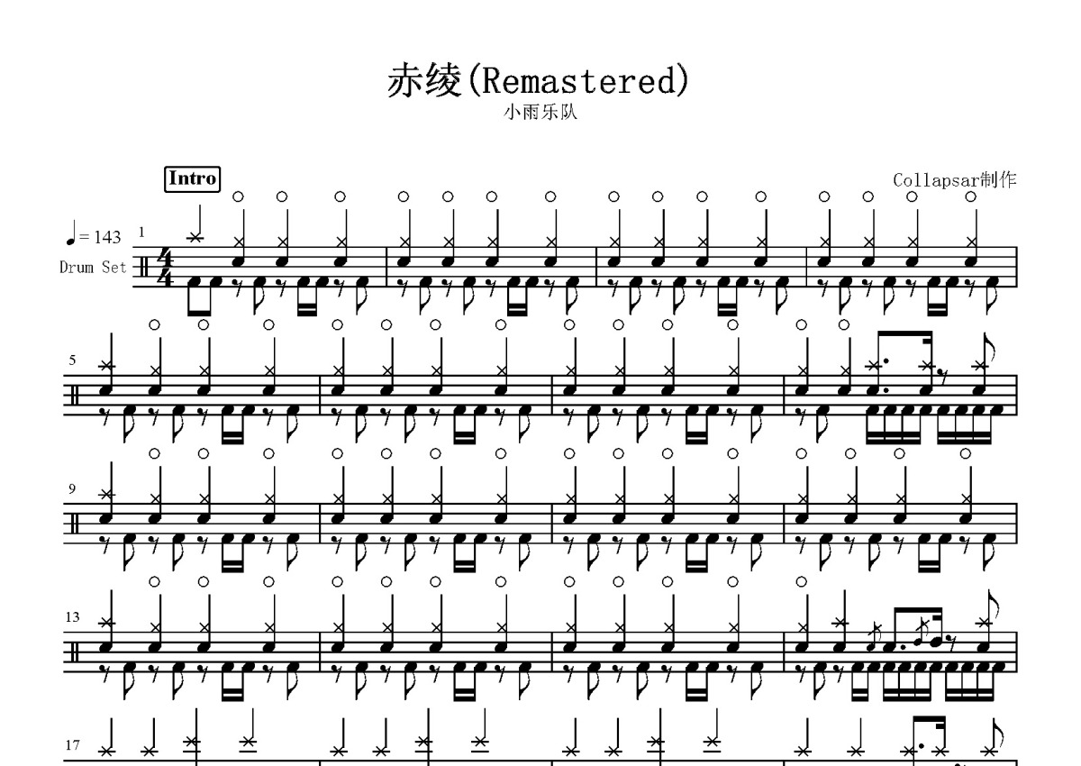 小雨乐队《赤绫》鼓谱 - 架子鼓谱