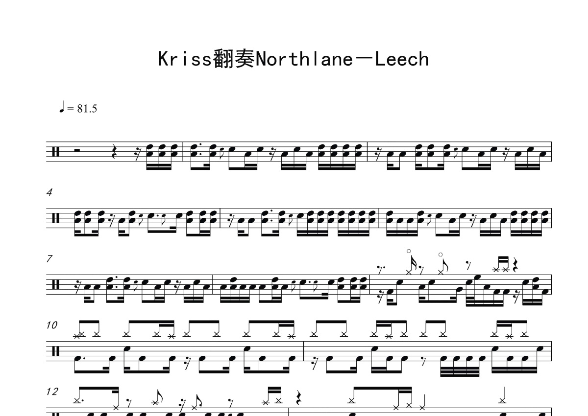 《Leech》是Kriss翻奏Northlane演唱的一首歌曲,这份鼓谱共有四张高清图谱,图谱由 @打鼓谱 编配上传,图谱使用五线谱编配,使用这份Leech架子鼓谱,你将能够轻松地敲打出这首Kriss翻奏Northlane的Leech,快来尝试吧。Kriss翻奏。